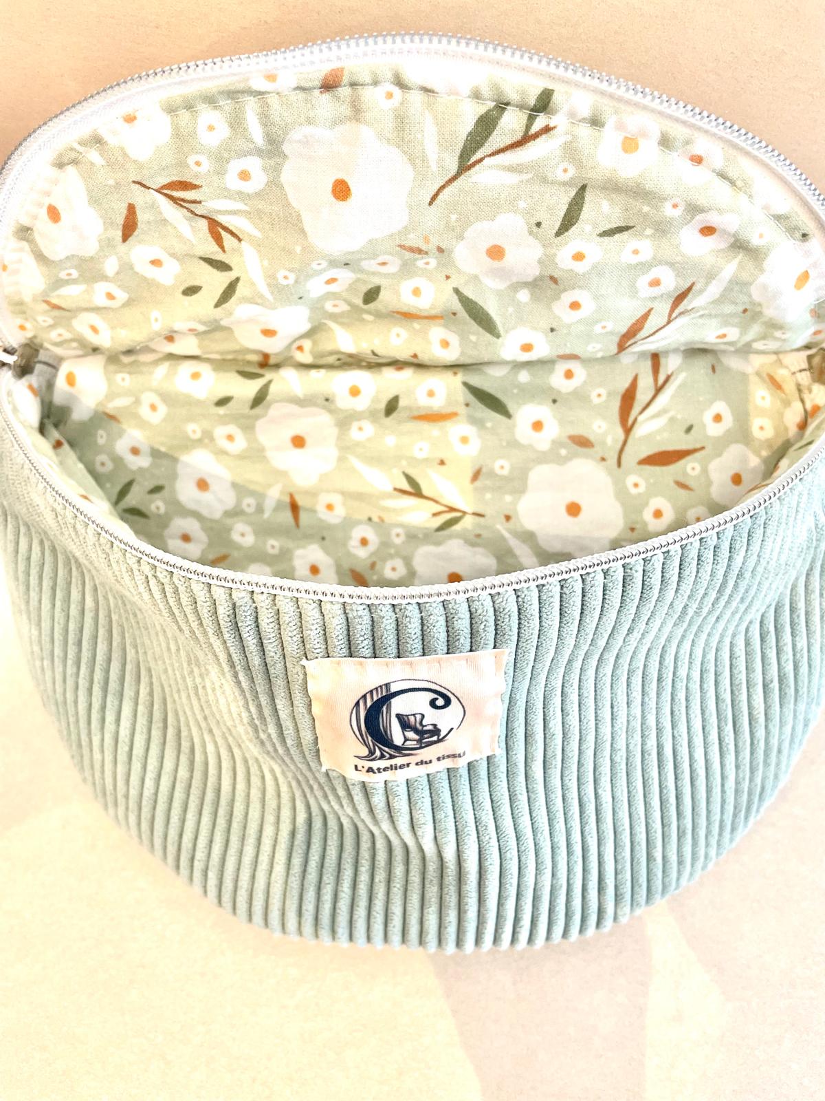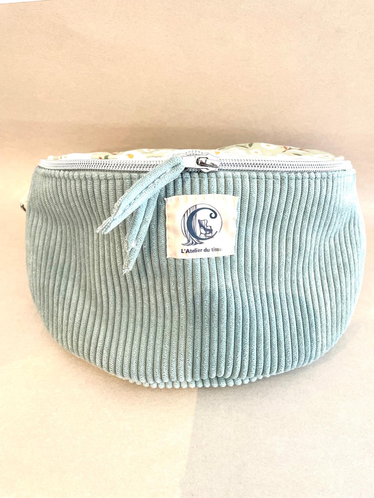 Faite en tissu velours cotelé, coton fleurs Oékotex, sangle en coton.