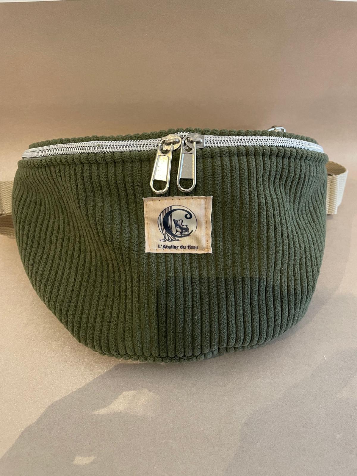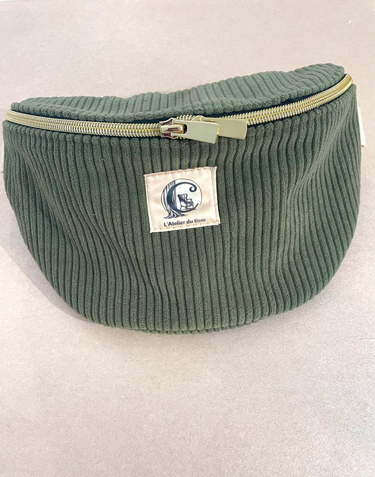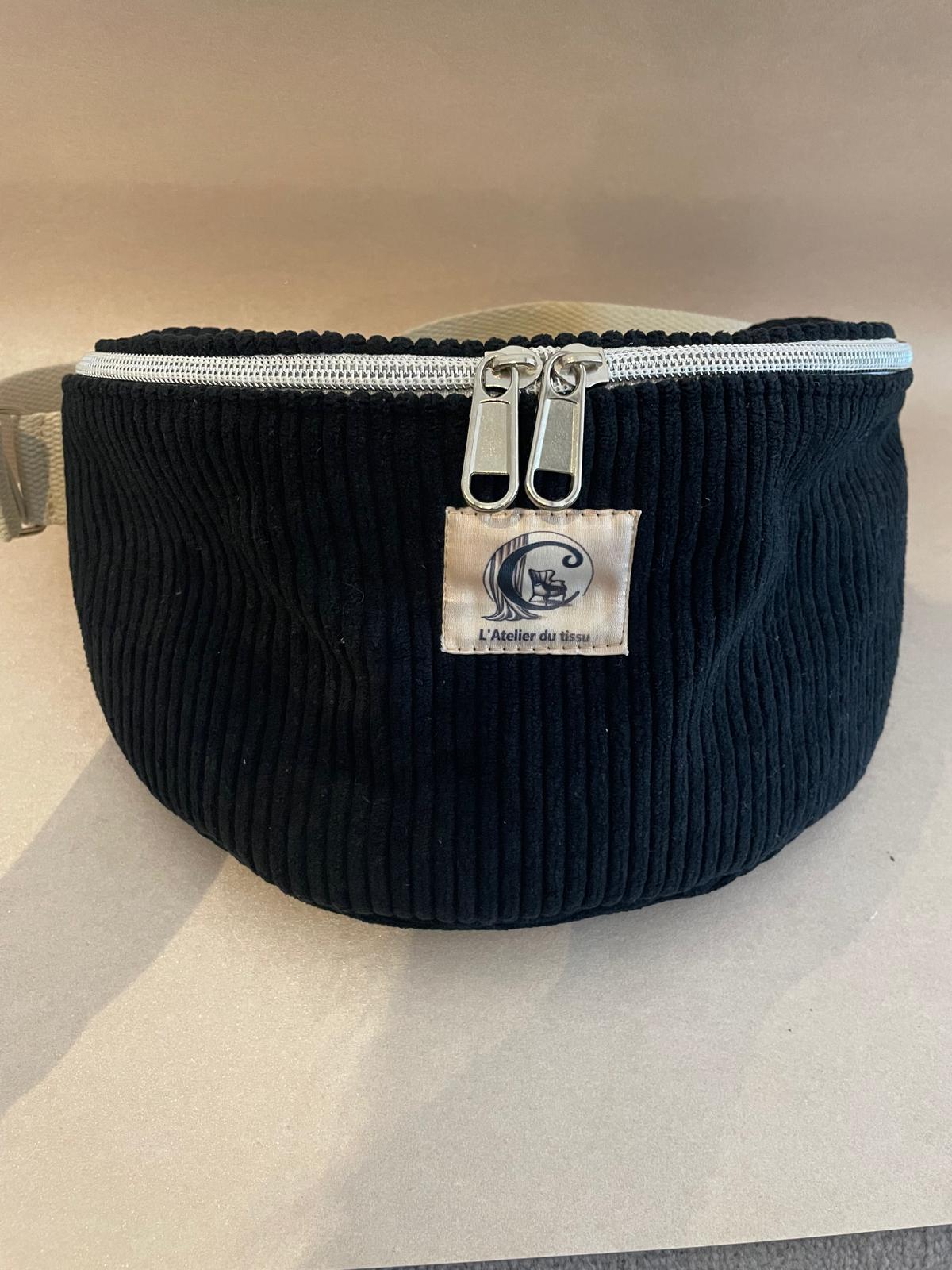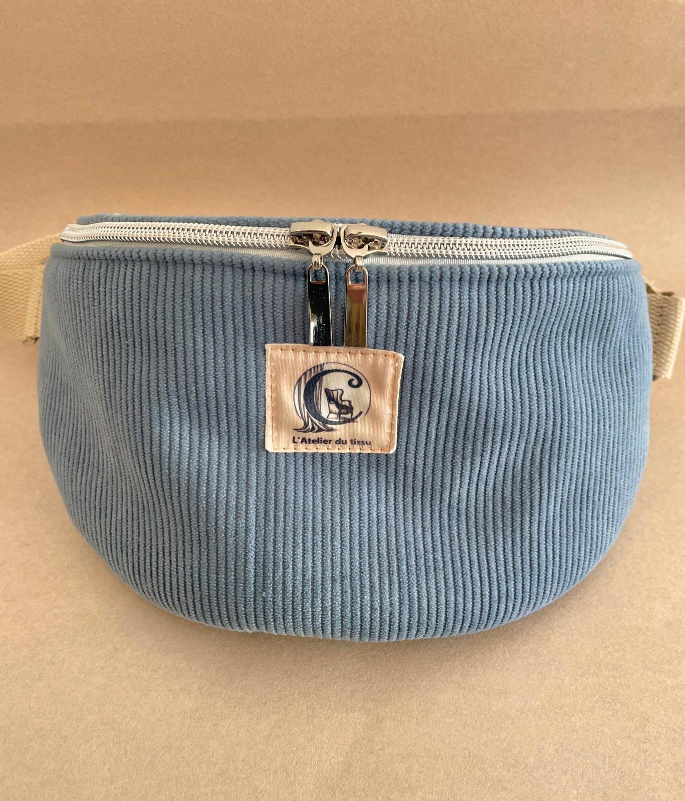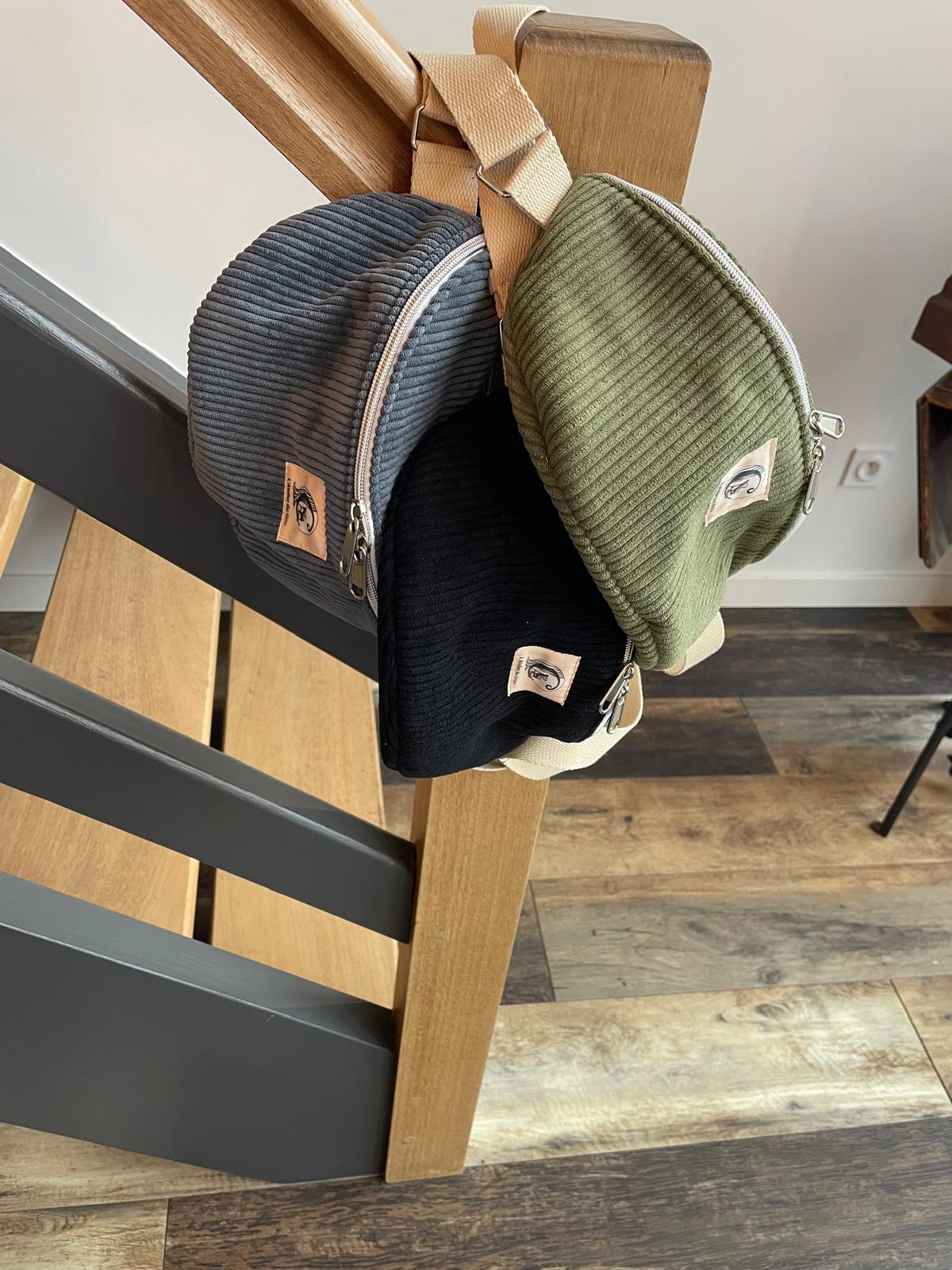 Faite en tissu velours cotelé et lin fin, sangle en coton.